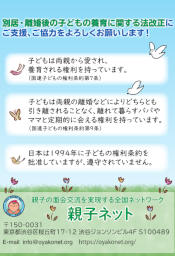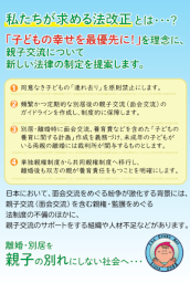 順に説明していけば、別居・離婚後の親子交流断絶問題を説明しやすく、また聞き手にも理解しやすくできています。 議員への 陳情の際などにご利用ください。下記からダウンロードしてご自由にお使いください。
